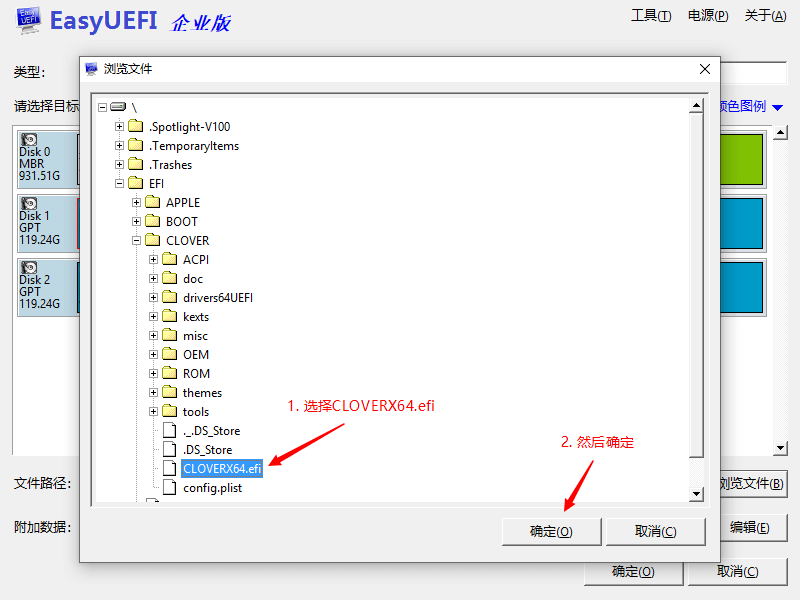 把 U 盘里 EFI 分区内的 EFI 文件夹中的 clover 文件夹,拷贝到装 macOS 的硬盘的 EFI 分区